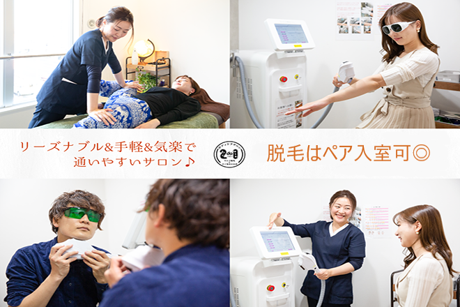 居心地の良い空間を提供できるよう、白を基調としたナチュラルな内装の店内は清潔感に溢れ、お客様にリラックスしてお寛ぎいただけるよう努めています。セルフ脱毛が気軽に行えるサロンとして伊丹で営業し、幅広い年代の方にご来店いただいています。脱毛はお一人ではもちろん、ご友人やカップル、ご夫婦でペアでお越しいただくことも可能です。デートの際やご友人とのお出掛けの際に、お気軽にお越しいただくことができます。